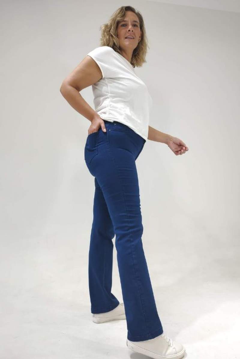 Pantalon Recto. Elastizado, tiro medio de gabardina azul marino.