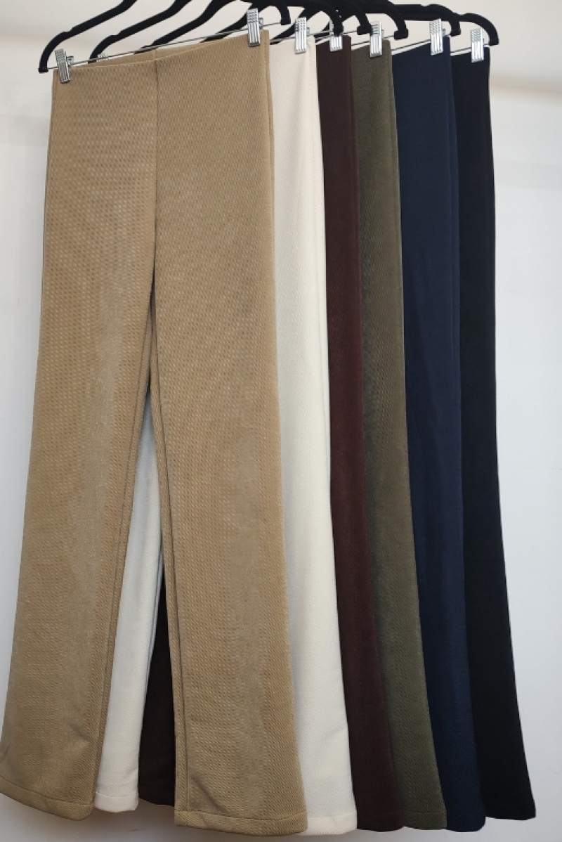 Pantalon calza recta, tiro alto, de punto roma con elástico oculto.