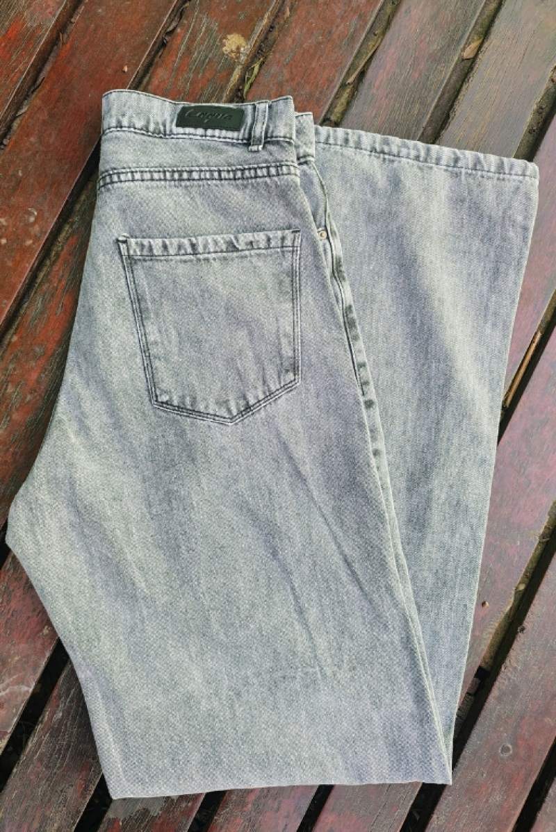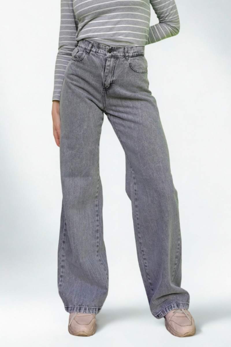Wideleg rigido, tiro alto, Gris con leve lavado nevado.