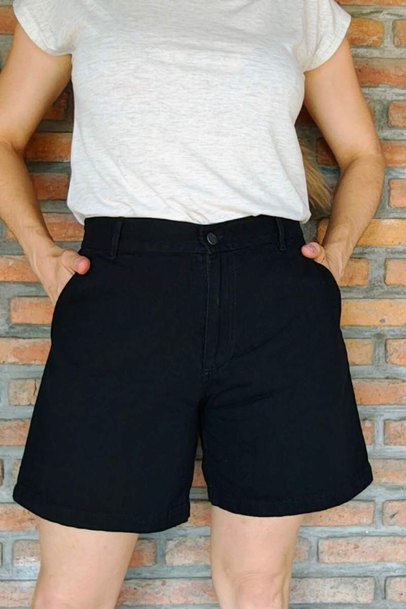 Bermuda de jean camisero fino negro, con media cintura elastica, comoda y fresca