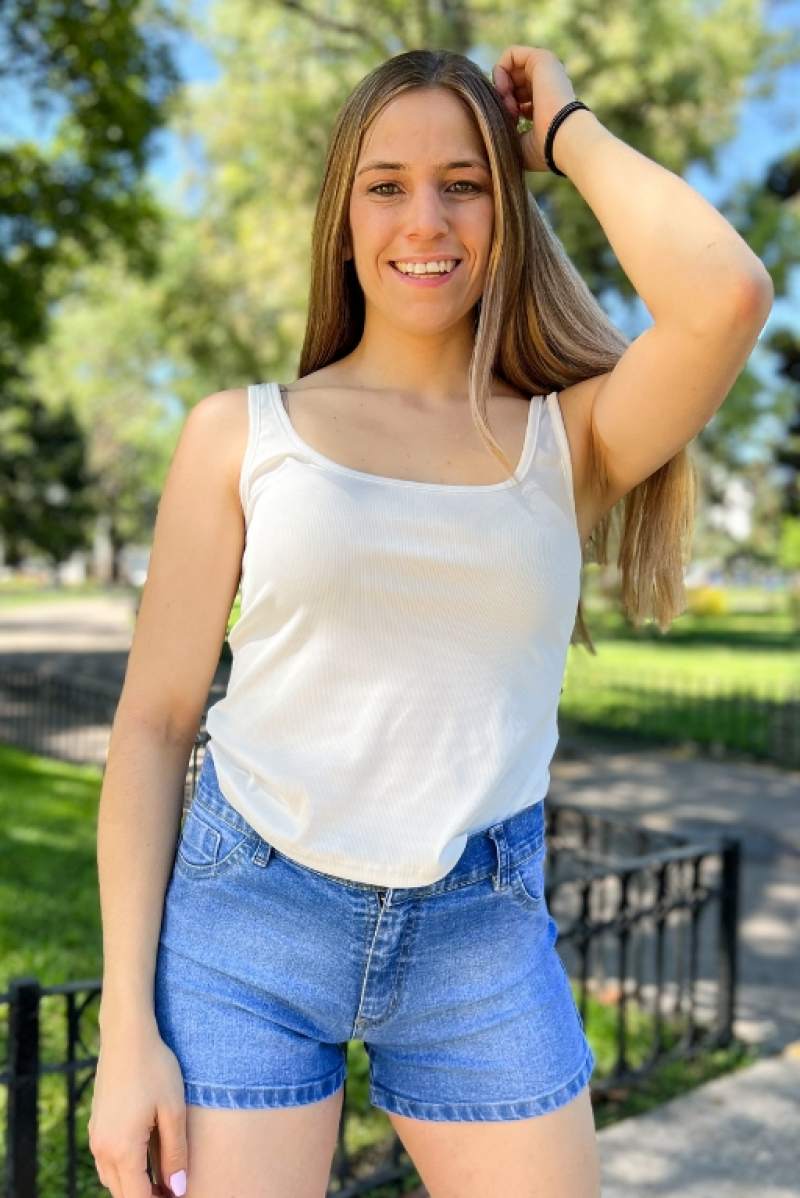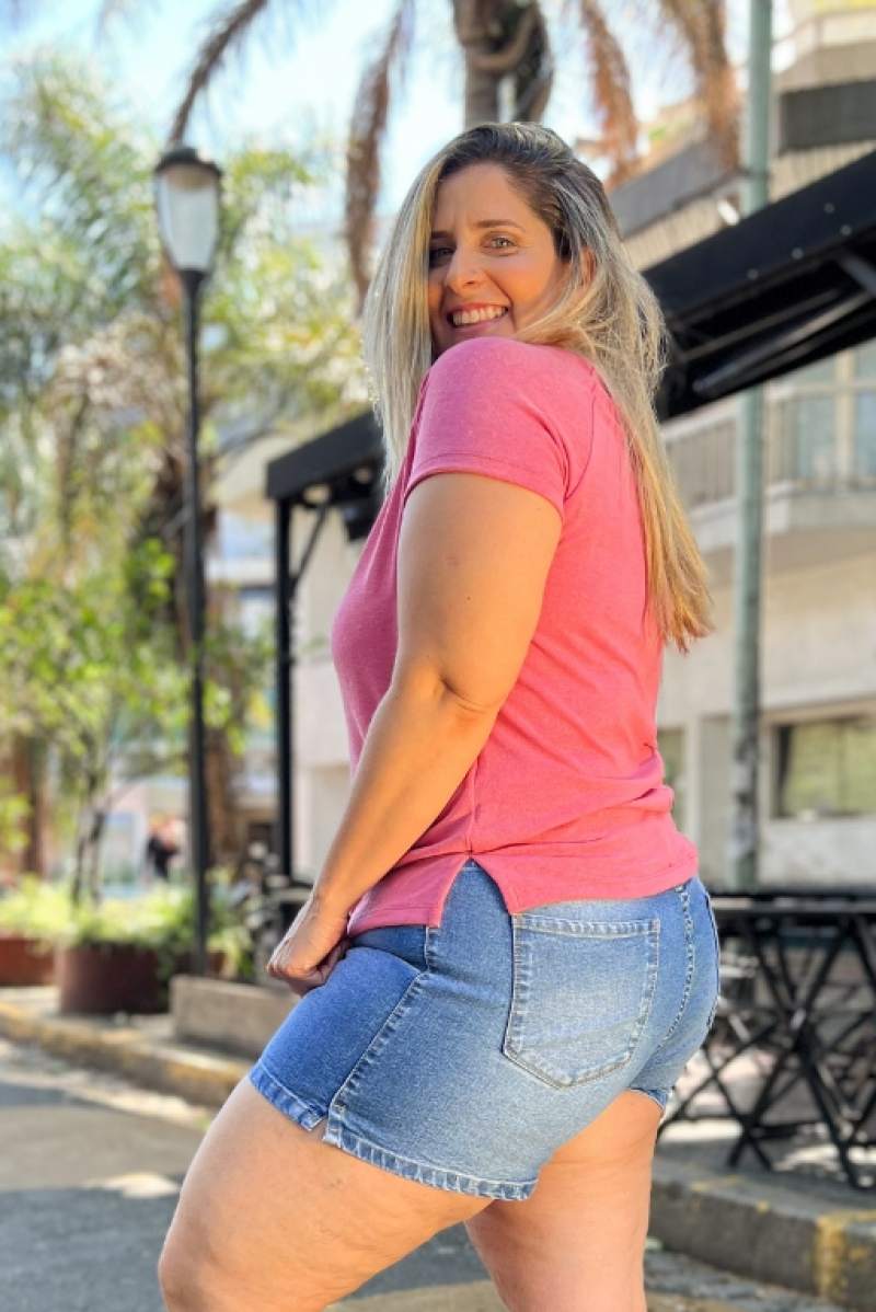 Short de jean elastizado, tiro medio, con un pequeño tajo en los costados que lo hace mega cómodo
