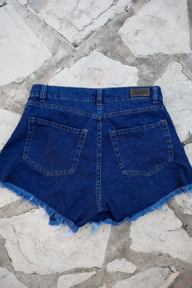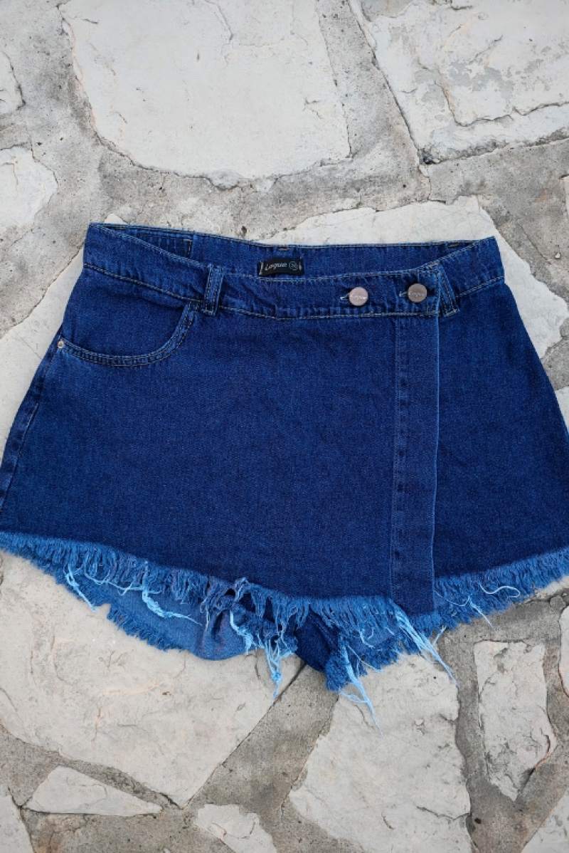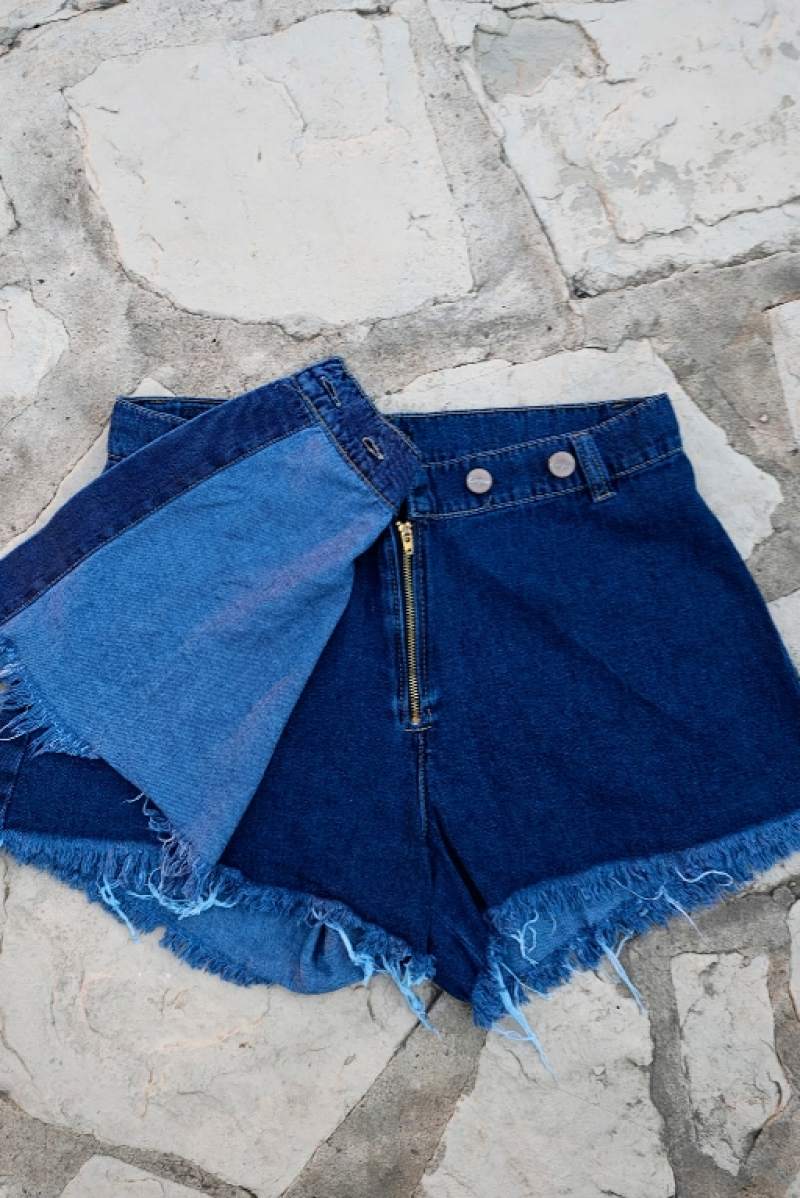 Skort (pollera- short) de jean corte MOM de jean rigido, tiro medio alto deflecado en el ruedo.