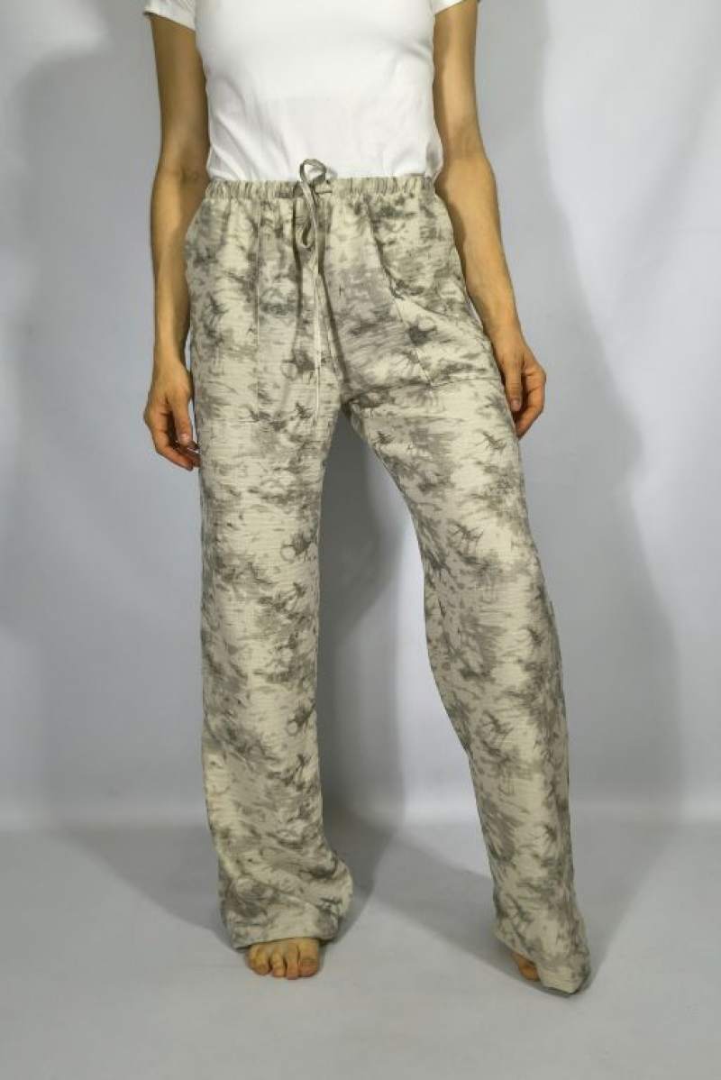 Pantalon ancho de Simil lino sedoso, estampado tipo piyamero con bolsillos y cordon.