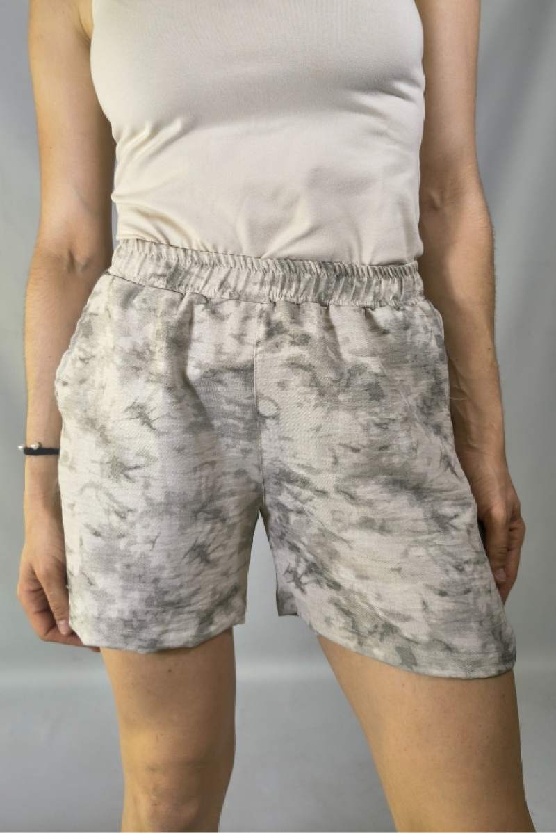 Short de Simil lino sedoso, estampado con bolsillos y cintura elástica, super fresco y cómodo.