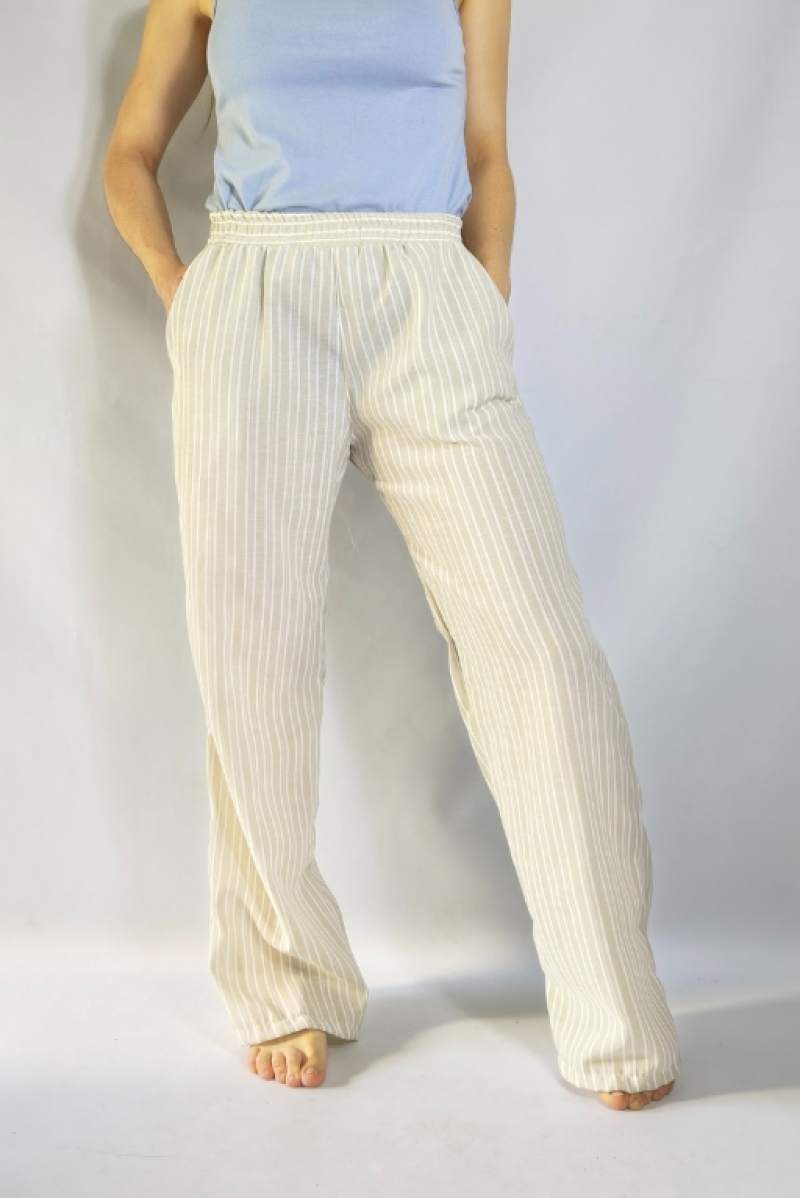Pantalon de Simil lino, rayado con bolsillos y cintura elástica, super fresco y cómodo.