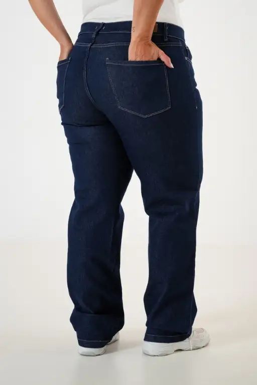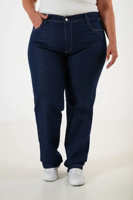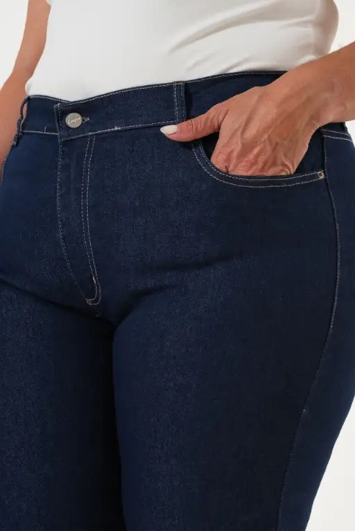 Pantalon azul de jean semi elastizado RECTO tiro medio.