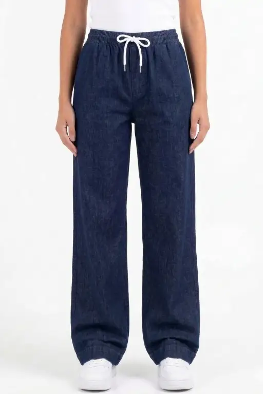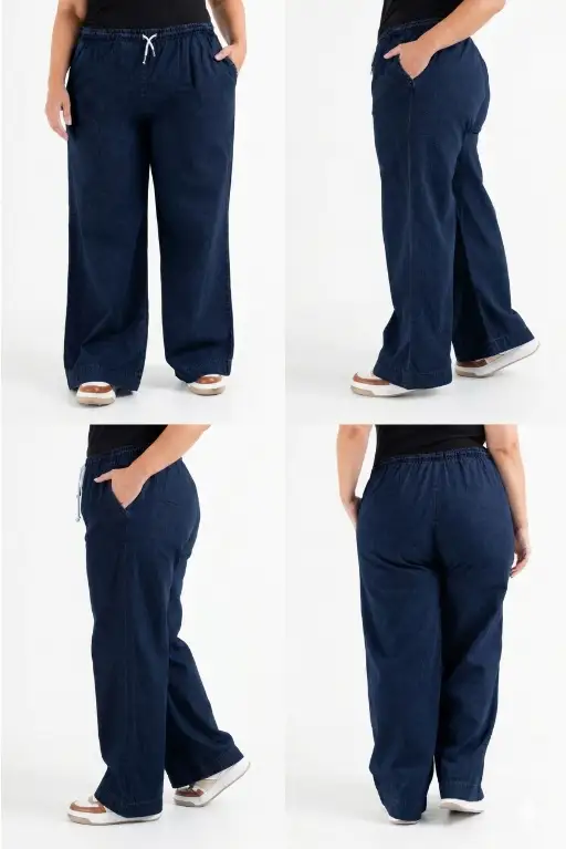 Palazo de Jean camisero azul oscuro, fino y canchero.